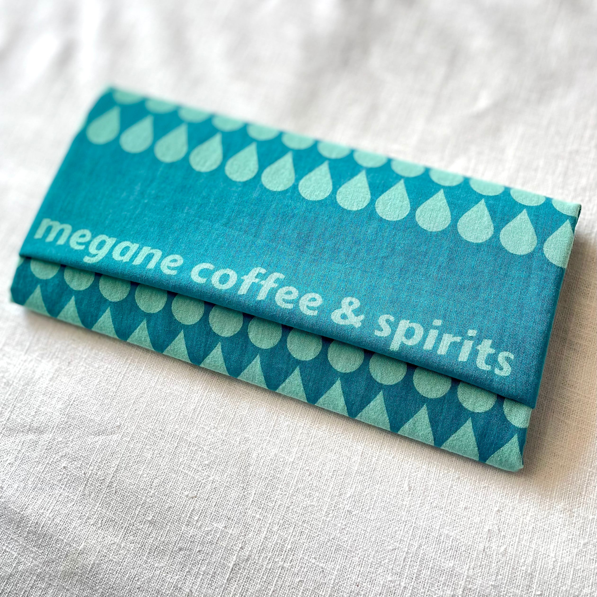 当店オリジナル「メガネブレンド」のドリップバッグ4個をオリジナルの手拭いで包みました。ドリップバッグは1個10g=1杯分となります。